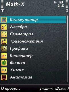 Перед установкой удалите старую версию. Программа для все возможных математических расчетов. Будет очень и очень полезна школьникам и студентам! Много новшеств у программы перерожденной появилось: • Скомпилирован код для запуска более быстрого. • Ошибка с отсутствием необходимых модулей исправлена. Без некоторых модулей теперь программа запускаться может. В файле прикрепленном прилагаются модули необходимые, за исключением стандартных. • Меню отображается сразу теперь при запуске программы. Иконки для него добавлены красочные. • Пункт "О программе" доступен при нажатии на левую софт-клавишу в меню. Можете номера разработчиков и помощников их узнать оттуда. • Интерфейс изменен полностью. • Вывод ответа тоже изменениям подвергся, нельзя теперь случайно изменить его, за исключением разделов некоторых. • Настройки программы добавлены. Цвет текста, фон из темы, заставку на выключение и многое другое можно изменять, включать и отключать. • Ошибок много басурманских исправлено. • Заставка-часы стала доступной по нажатии клавиши # (решетка). • Калькулятор изменен полностью, много функций в него добавлено. • Все ошибки, связанные с делением на ноль изничтожены. • При нажатии кнопки "Отмена" в разделе любом возврат происходит в меню предыдущее. • Ответ полный выводится теперь везде. • Меню алгебры и геометрии изменены для более легкого поиска нужных функций. • Отображение критических ошибок добавлено.. Для работы программы необходим установленный Python 1.4.5 и Модули