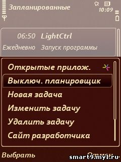 Совместима программа также с S60v5. PlanTask - программа от наших китайских друзей для выполнения различных задач по установленномувремени. Основные возможности: - Запуск/закрытие программы по расписанию; - Перезагрузка/выключение по расписанию; - Смена профилей по расписанию; - Выбор режима запуска программы(в фоне или нет) Программу необходимо подписать или установить на разблокированный смартфон.